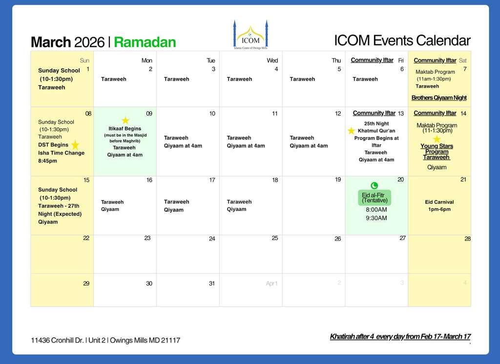 ICOM is committed to providing quality Islamic Education according to the Quran and the Sunnah of the Prophet Mohammed (Peace Be upon Him) to a diverse student population in the greater area. We have classes for students of every age group so that they can come and learn from our experienced scholars.